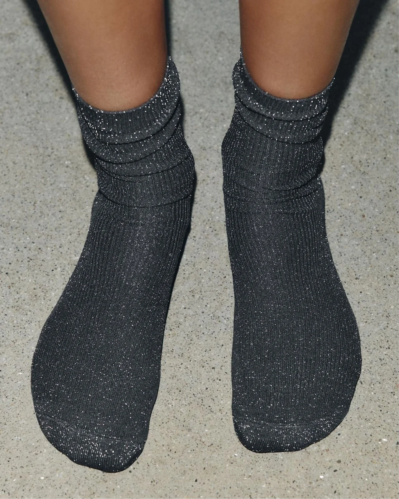We don’t think twice about socks in summer, but once winter hits, they’re suddenly a daily essential. So why not retire those old white sport pair we all rely on and switch to something a little fun? A glittery sock is small but instant outfit upgrade.