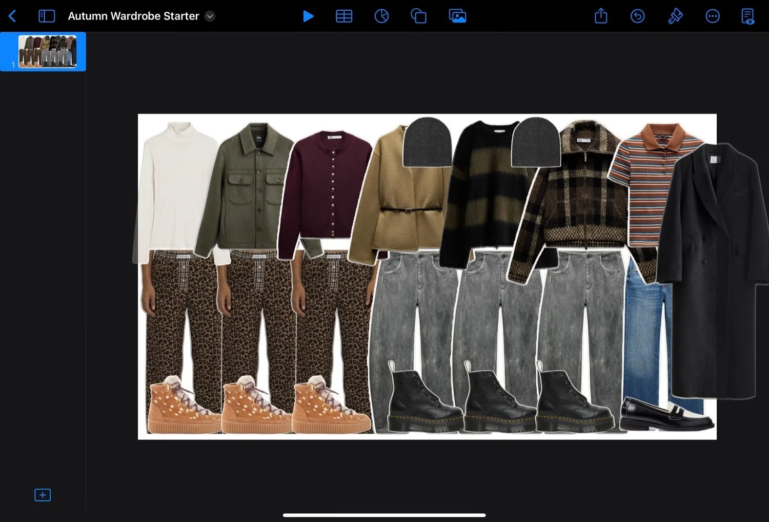 We use Pages to build our digital wardrobe, so there's no need to invest in additional software—just make use of what you already have! With Pages, you can virtually mix and match your wardrobe, plan outfits, create packing lists, and organise all your style inspiration in one place.