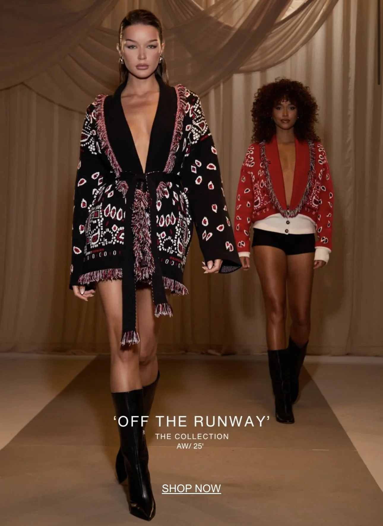 Last week, Noughts & Kisses unveiled their latest “Off the Runway” collection - a lineup that feels equal parts bold and romantic. The drop leans into rich burgundy tones, intricate lace details, and in our opinion their standout piece of the season: their brand-new boho cardigans. Think pattern, fringe, and deep autumn colours - They are SO good.