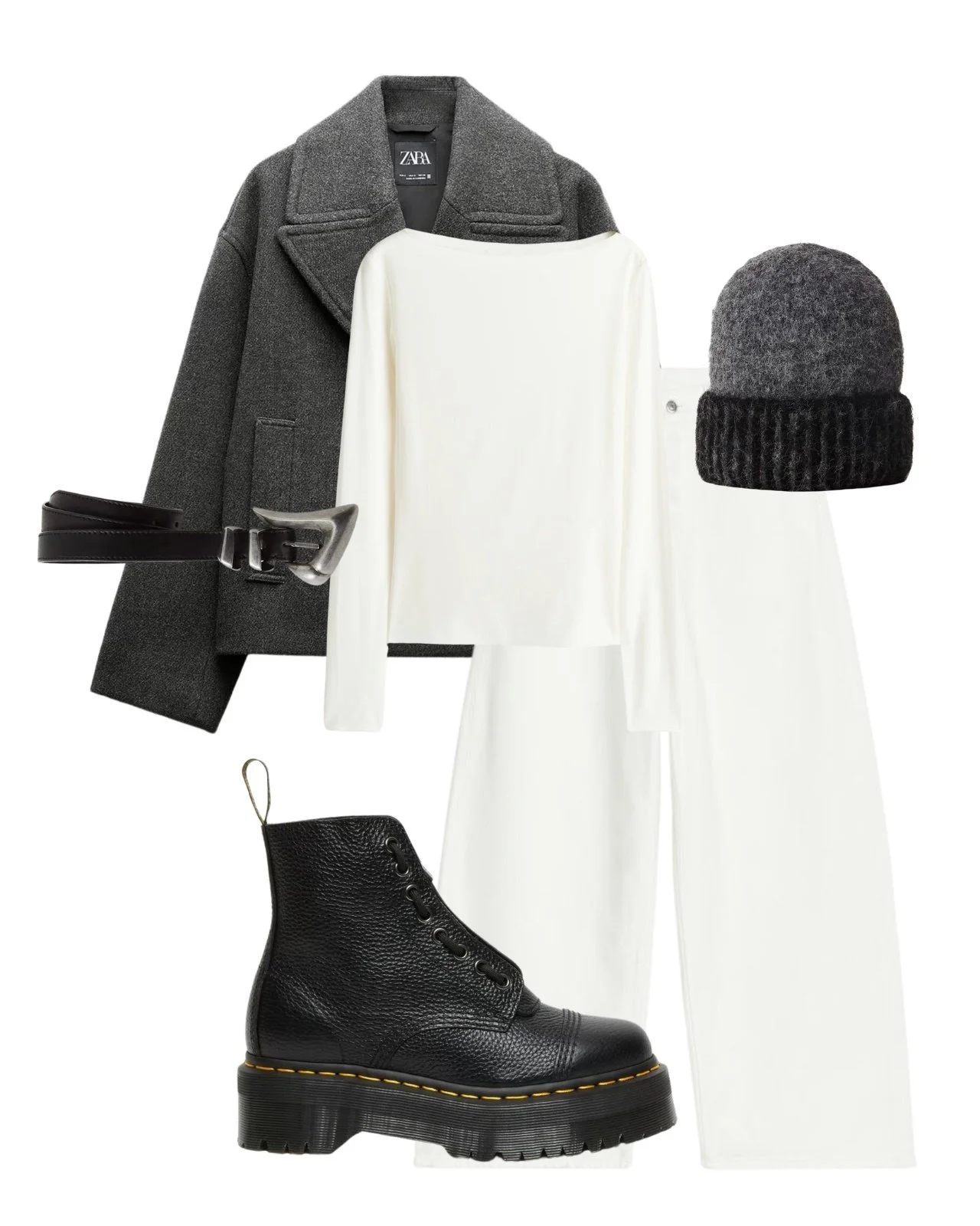 Don’t sleep on your basics—they’re always a win for looking polished. If you’re over the usual straight jeans and plain top, switch it up with some barrel leg jeans. Add a bodysuit, a statement belt, and throw over a wool coat for a super easy look!